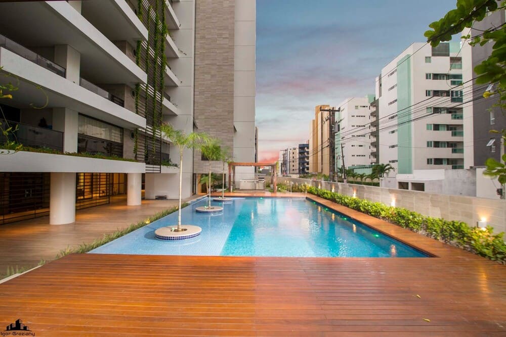 A configuração do masterplan naturalmente promove o convívio social e o projeto de interiores o complementa, delineando ambientes despojados e joviais, sem perder a elegância e requinte que um empreendimento deste porte merece.